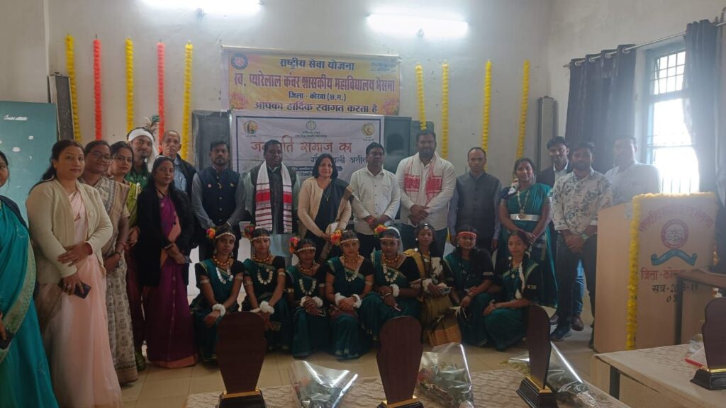 कोरबा। स्व. प्यारे लाल कंवर शासकीय महाविद्यालय भैसमा में जनजातीय गौरव महोत्सव का भव्य आयोजन किया गया। महाविद्यालय सभागार कक्ष में सुबह 11 बजे से शुरू हुए इस कार्यक्रम में जनजातीय संस्कृति, परंपरा और विरासत की झलक देखने को मिली।कार्यक्रम के मुख्य अतिथि वनवासी कल्याण आश्रम कोरबा के अध्यक्ष रघुराज सिंह उईके रहे, जिन्होंने अपने उद्बोधन में जनजातीय समाज की समृद्ध संस्कृति और उनकी पहचान को संरक्षित रखने की आवश्यकता पर जोर दिया।वहीं विशिष्ट अतिथि अखिल भारतीय वनवासी कल्याण आश्रम के लोक कला आयाम प्रमुख वीरबल सिंह ने जनजातीय युवा प्रतिभाओं को मंच प्रदान करने की आवश्यकता पर प्रकाश डाला और महाविद्यालय के इस प्रयास की सराहना की।