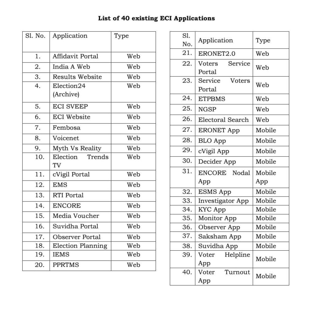 ECINET में Voter Helpline App, Voter Turnout App, cVIGIL, Suvidha 2.0, ESMS, Saksham और KYC App जैसे ऐप सम्मिलित होंगे, जिन्हें मिलाकर अब तक 5.5 करोड़ से अधिक बार डाउनलोड किया जा चुका है।