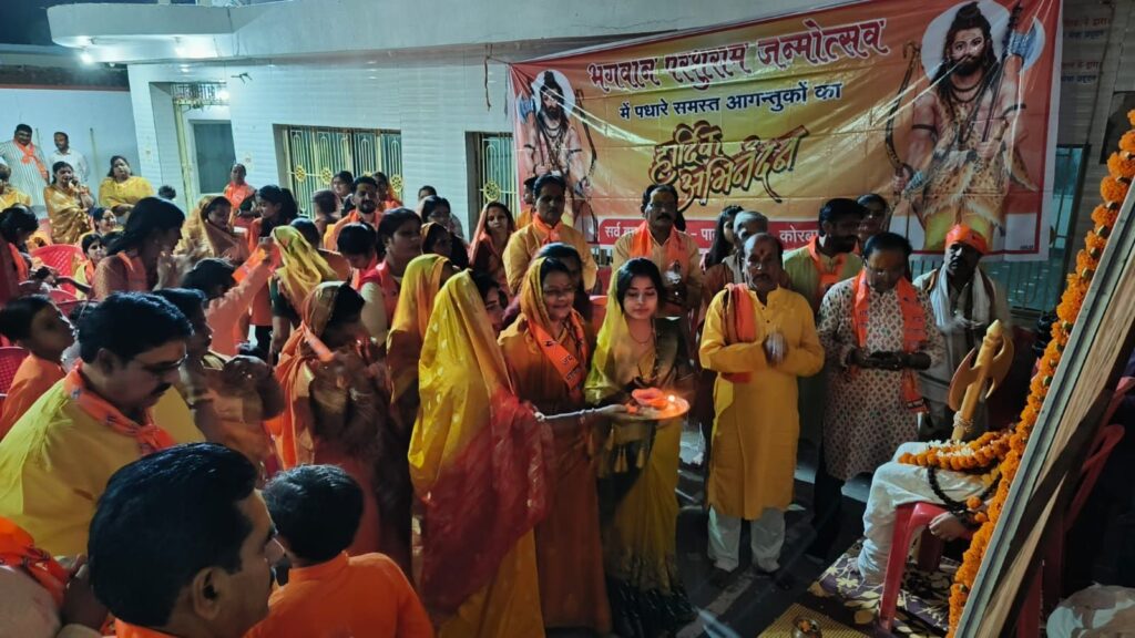 कोरबा/पाली:- अक्षय तृतीया पर भगवान विष्णु के छठवें अवतार भगवान परशुराम जन्मोत्सव पाली नगर में घुमधाम से मनाया गया साथ ही भव्य शोभायात्रा निकाली गई,आयोजन में आप पास क्षेत्र के ब्राह्मण बंधु भी बड़ी संख्या में शामिल हुए, शोभायात्रा के पूर्व महामाया मंदिर पाली में एकत्रीकरण हुई जहां से मां महामाया और भगवान परशुराम जी की पूजा अर्चना के बाद भव्य शोभायात्रा नगर भ्रमण के लिए निकली जो नगर के मुख्य चौक चौराहों से होते हुए वापस महामाया मंदिर पहुंची, शोभायात्रा के दौरान प्रसाद वितरण के साथ साथ छत्तीसगढ़ के कलाकार उपाध्याय बंधुओं द्वारा अपनी भक्तिमय प्रस्तुति भी दी गई, अंत में शोभायात्रा के बाद आरती पूजा और भोग भंडारे का भी आयोजन किया गया।